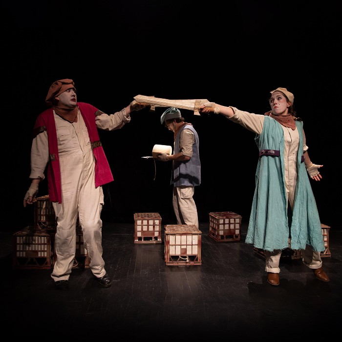 “In 2017 Pinwheel produced The Tale Of Ichabod Scrubb, and wanted to recapture this quirky spirit we discovered in using simple items as props, things that you can easily lay your hands on. We have bought that concept, thanks to our designer Elle Cantor – to this one too. We both wanted to be able to stir the imagination and show children that you can have huge adventures without lot of fancy props, it’s to encourage them to see what they have readily available to turn into a castle (milk crates), swords (a rolled newspaper), a cape (a bedsheet), tools (pots and pans)…too much emphasis it put on using that small screen to capture a child’s imagination.